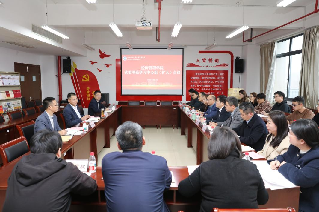 学校办公室、宣传部负责人,经济管理学院党委理论学习中心组全体成员及师生党支部书记参加会议。