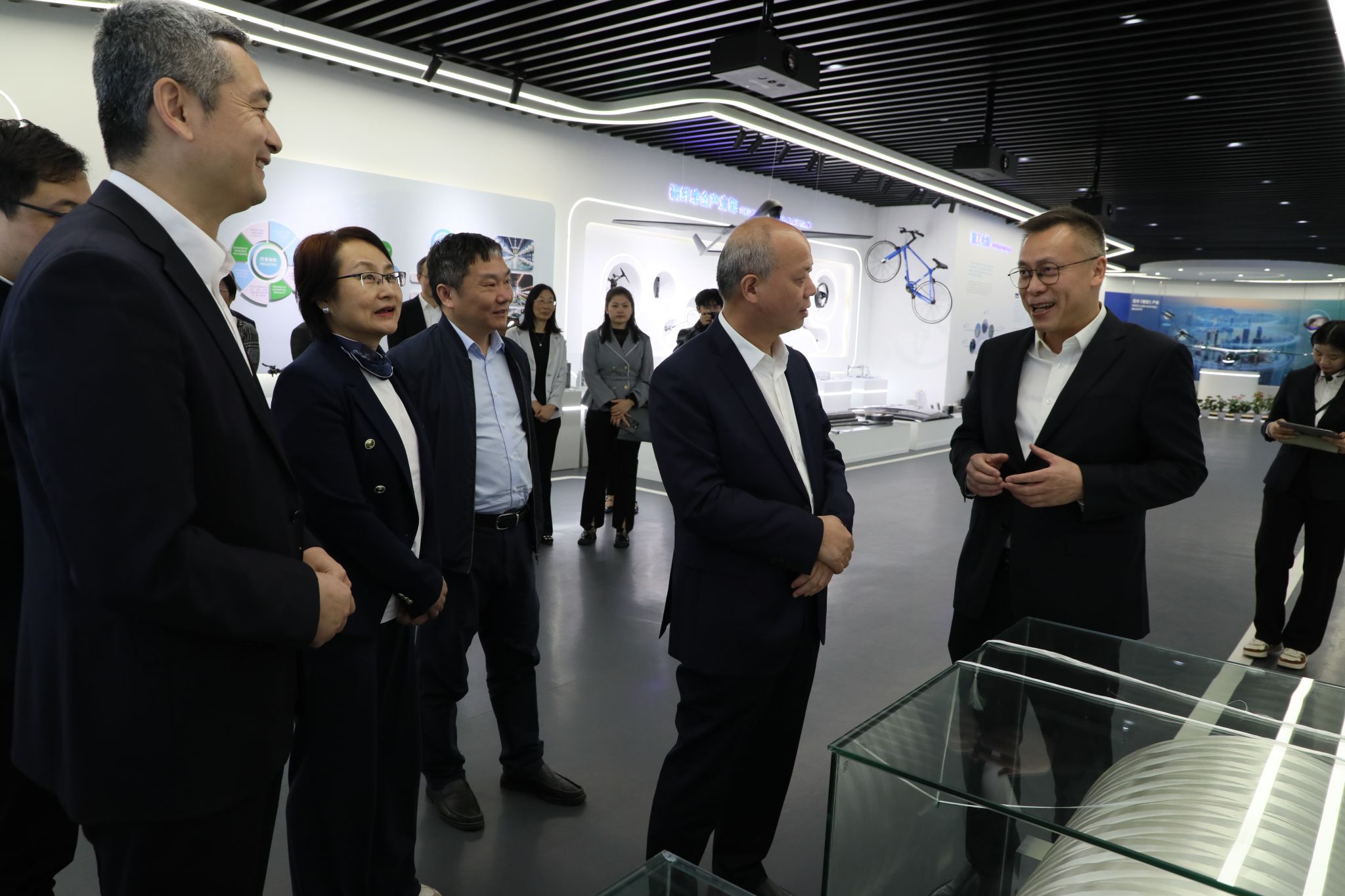 活动伊始,浙江理工大学校长陈文兴院士一行在精工科技董事长孙国君的陪同下,参观了公司的先进复合材料产业化研究中心、碳纤维装备生产车间,近距离感受了公司在碳纤维新材料领域的硬核实力与创新成果。
